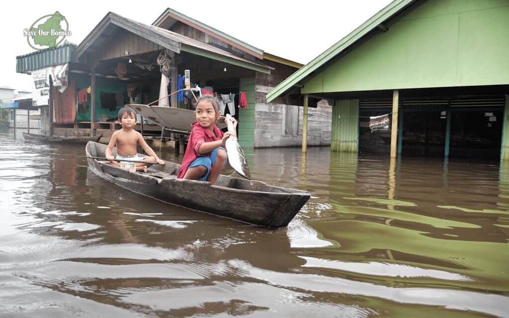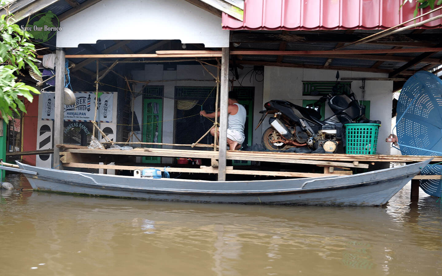 Sambil membuat alat penangkap ikan dari atas perahu miliknya, Kulian menceritakan bahwa sudah hampir dua bulan rumah ia dan warga lainnya terendam banjir. Memilih tidak mengungsi, Kurlian membuat katil, tempat tinggal sementara dari susunan papan dan balok kayu yang ia tempel di bagian dalam dinding rumah. Sehingga, ada tempat tinggi yang tidak terendam air.