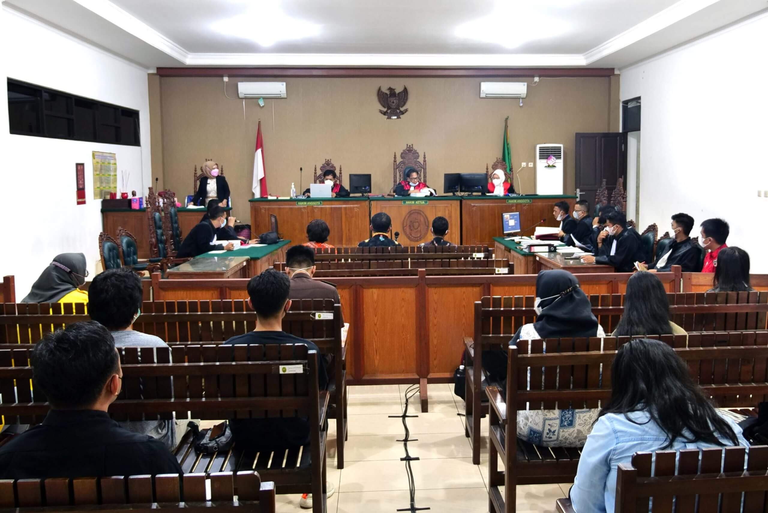 Berbeda tiap kali persidangan Kades Kinipan berlangsung. Hari itu Kamis, 31 Maret, di area depan gerbang tampak lalu lalang anak-anak muda. Beberapa mengenakan almameter kuning universitas. Sementara itu, tepat di seberang gerbang, beberapa motor juga terparkir berjajar dan para pengendaranya turun, berkumpul, sambil mulai membuka gulungan kertas karton yang mereka bawa.