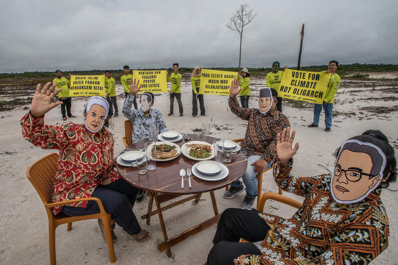 Aksi kreatif ini disebut parodi Makan Siang Presiden Jokowi dan Tiga Calon Presiden di Pemilihan Presiden 2024. Aksi yang digagas para aktivis dari Greenpeace, Save Our Borneo, Walhi Kalimantan Tengah, dan LBH Palangka Raya. Pesan yang ingin disuarakan adalah bahwa food estate bukanlah solusi ketahanan pangan, malah justru memperparah krisis pangan dan iklim.