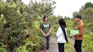 Novi Anggraeni, mahasiswa Antakusuma lainnya, tak kalah seru. Dua bule datang ribuan kilometer dari Jerman ke Jerumbun, naik perahu menyusuri Sungai Sekonyer yang penuh buaya, kehujanan, kepanasan, lengkaplah sudah derita itu.
