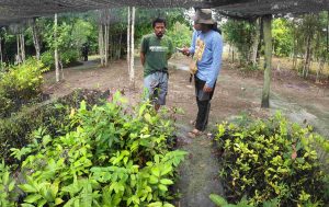 Tak jauh dari kamar mandi hamparan bibit hijau menyapa di tempat penyemaian. Tempat itu menyimpan ribuan bibit berbagai jenis pohon, seperti ulin (Eusideroxylon zwageri), belangeran (Shorea Balangeran), Nyatoh atau nagasari (Palaquium rostratum), Gaharu (Aquilaria malaccensis) hingga berbagai macam buah-buahan. Tempat penyemaian dilindungi jaring hitam atau yang disebut paranet untuk naungan bibit.